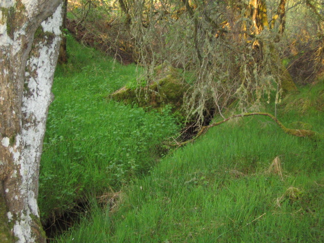 I went to the house and went to the bottom of the garden which was a thicket. In there (see photo below) was a stream and some rocks. The large rock mentioned does not seem to be there, but it was very overgrown. This is where the conventicles took place.
